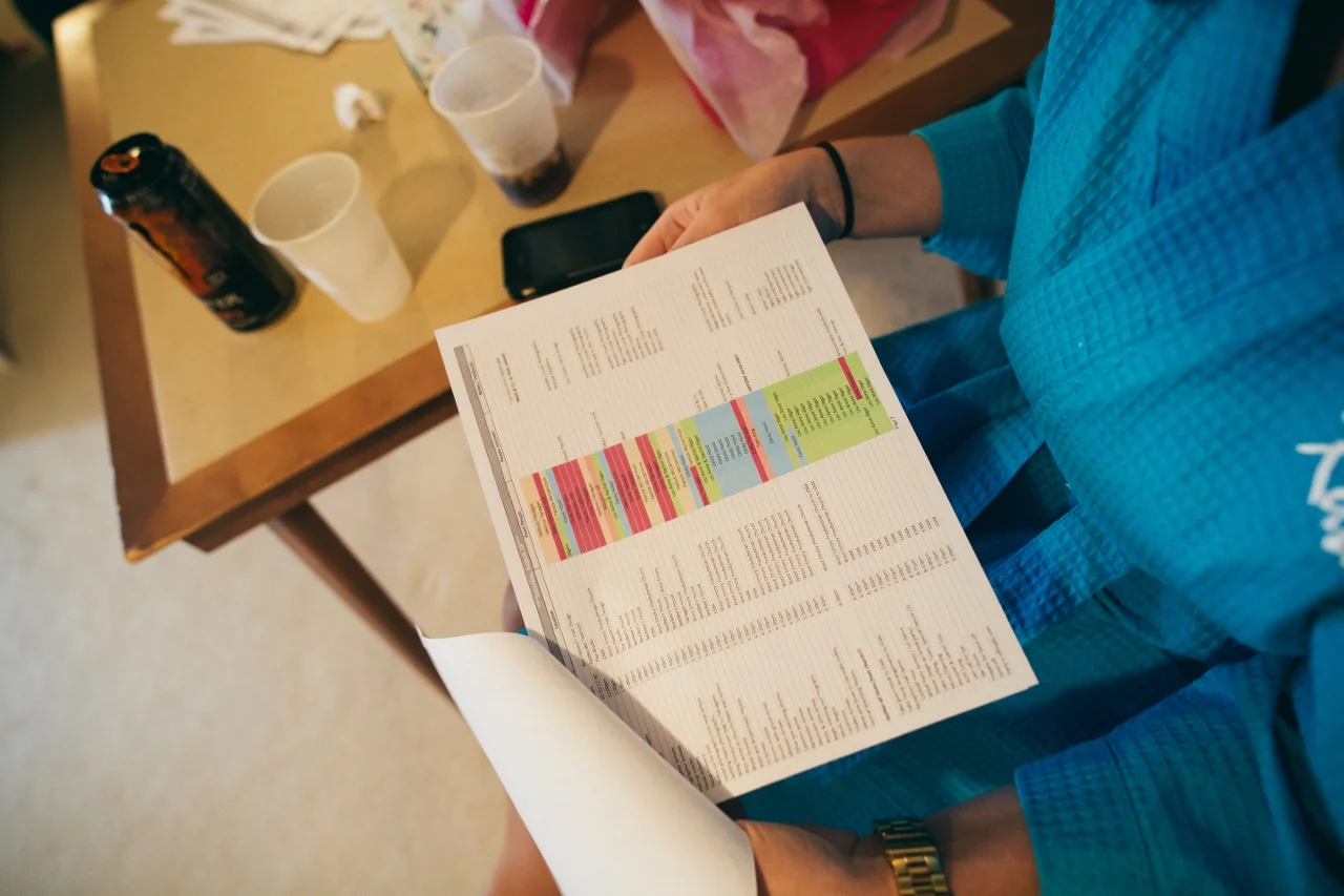 Be sure to write down arrivals for everyone for everything that day! Include the wedding vendors, bridal party, family, and anything else that pertains to the wedding.